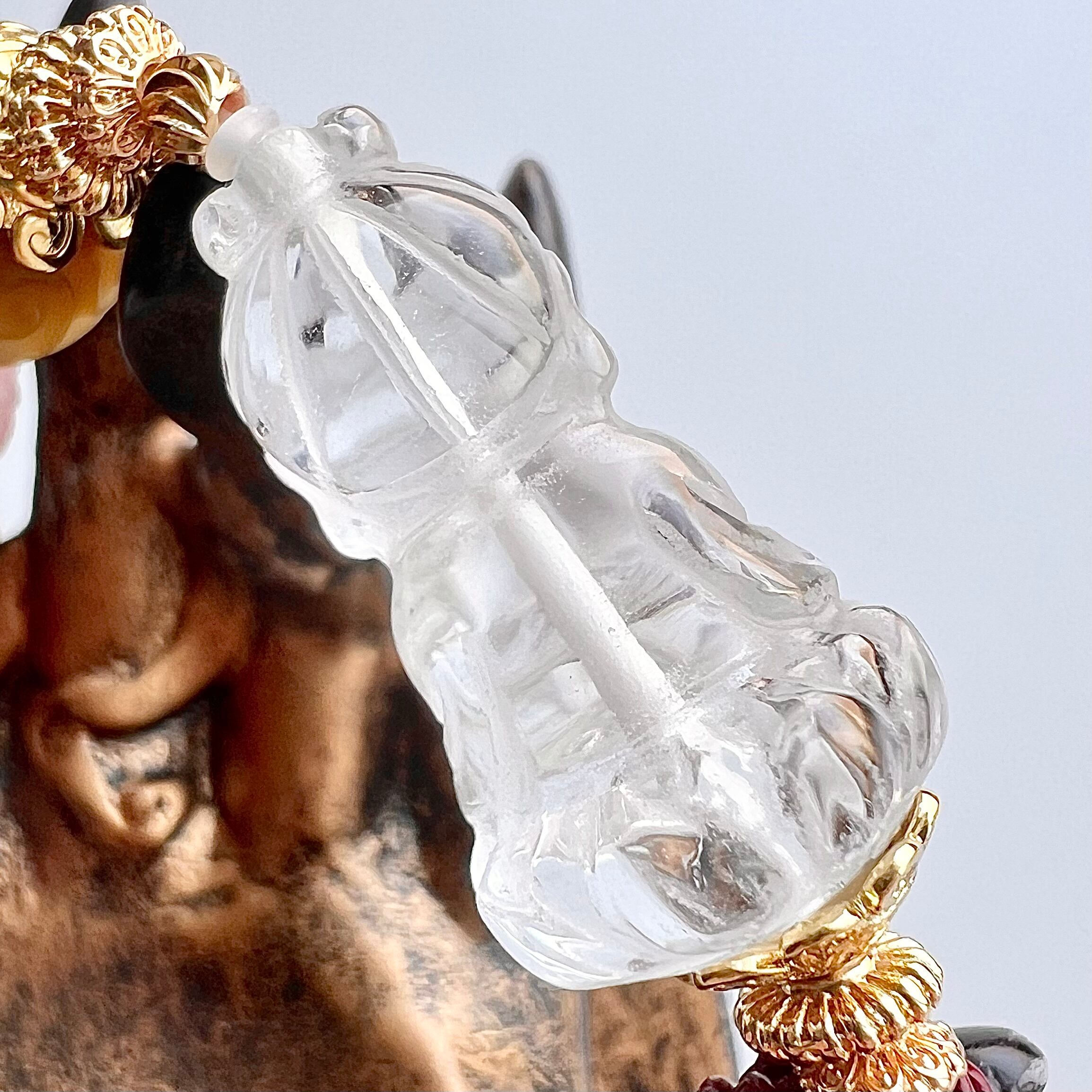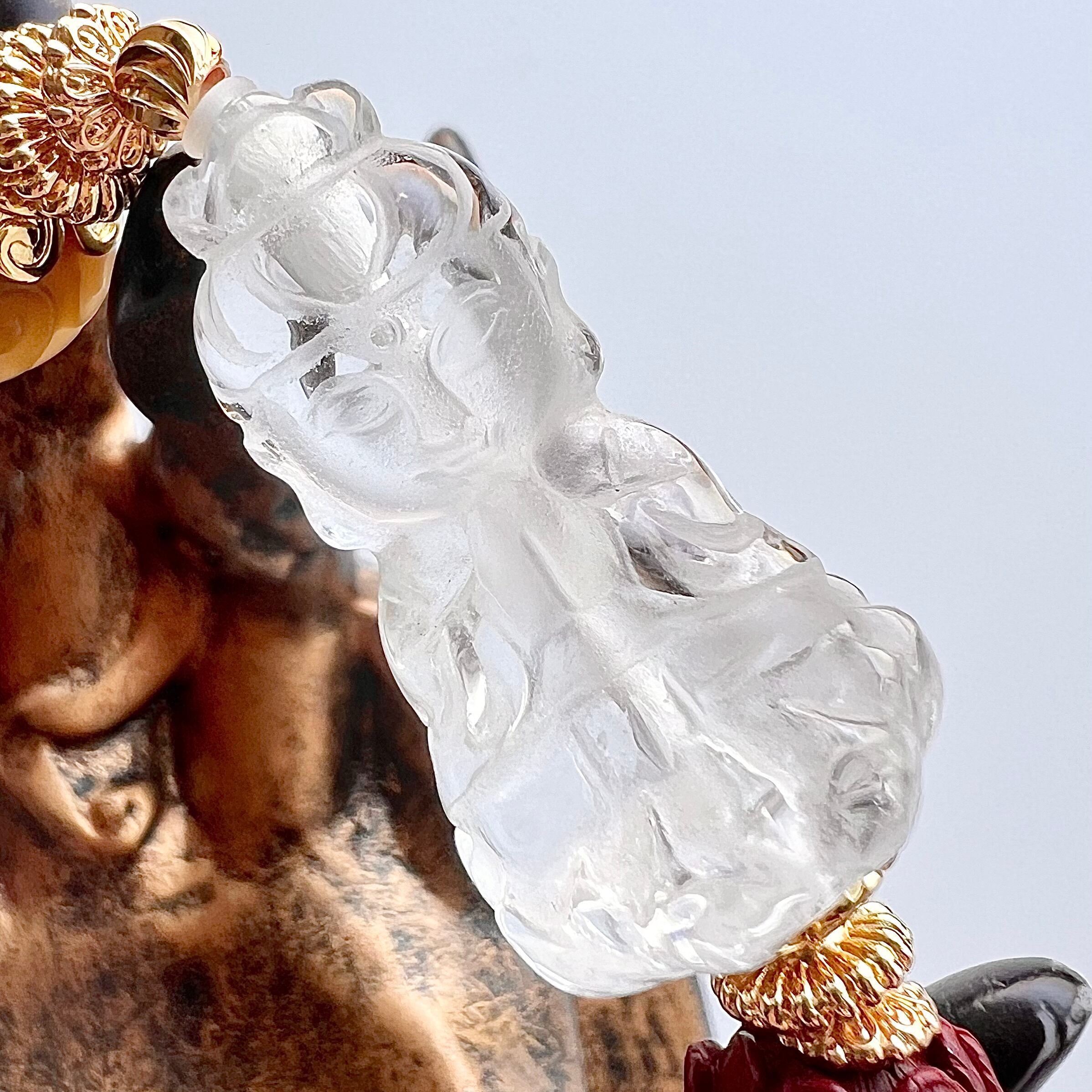 水晶の観音菩薩と塩源瑪瑙回紋珠のデザインブレスレットです