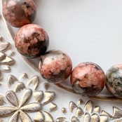 初めて手にした石ですが、ピンクオレンジの鉱物とグリーンがかった短い針状の内包物が草花を思わせます