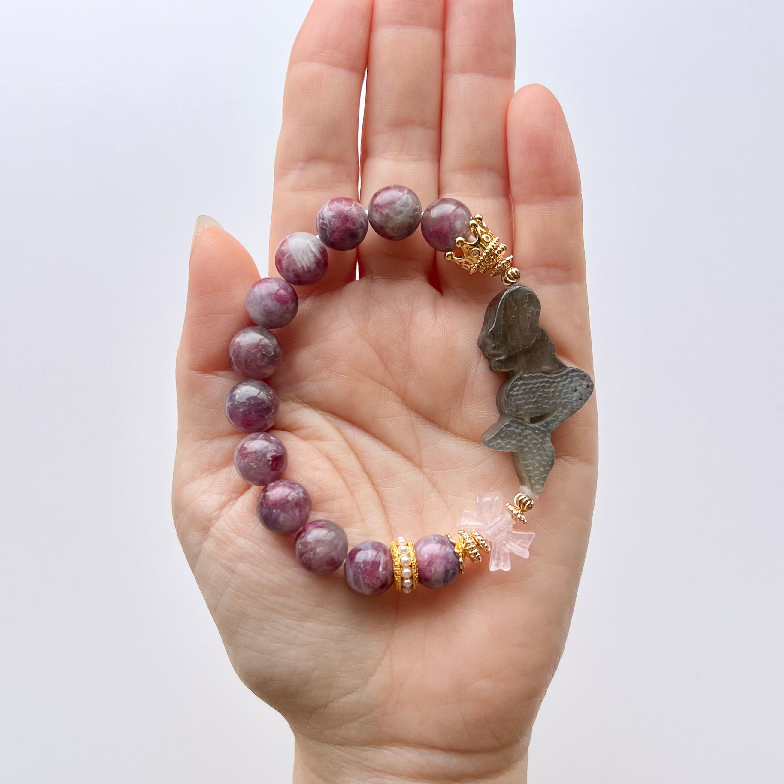 人魚のラブラドライトとユニコーンストーンのデザインブレスレットです