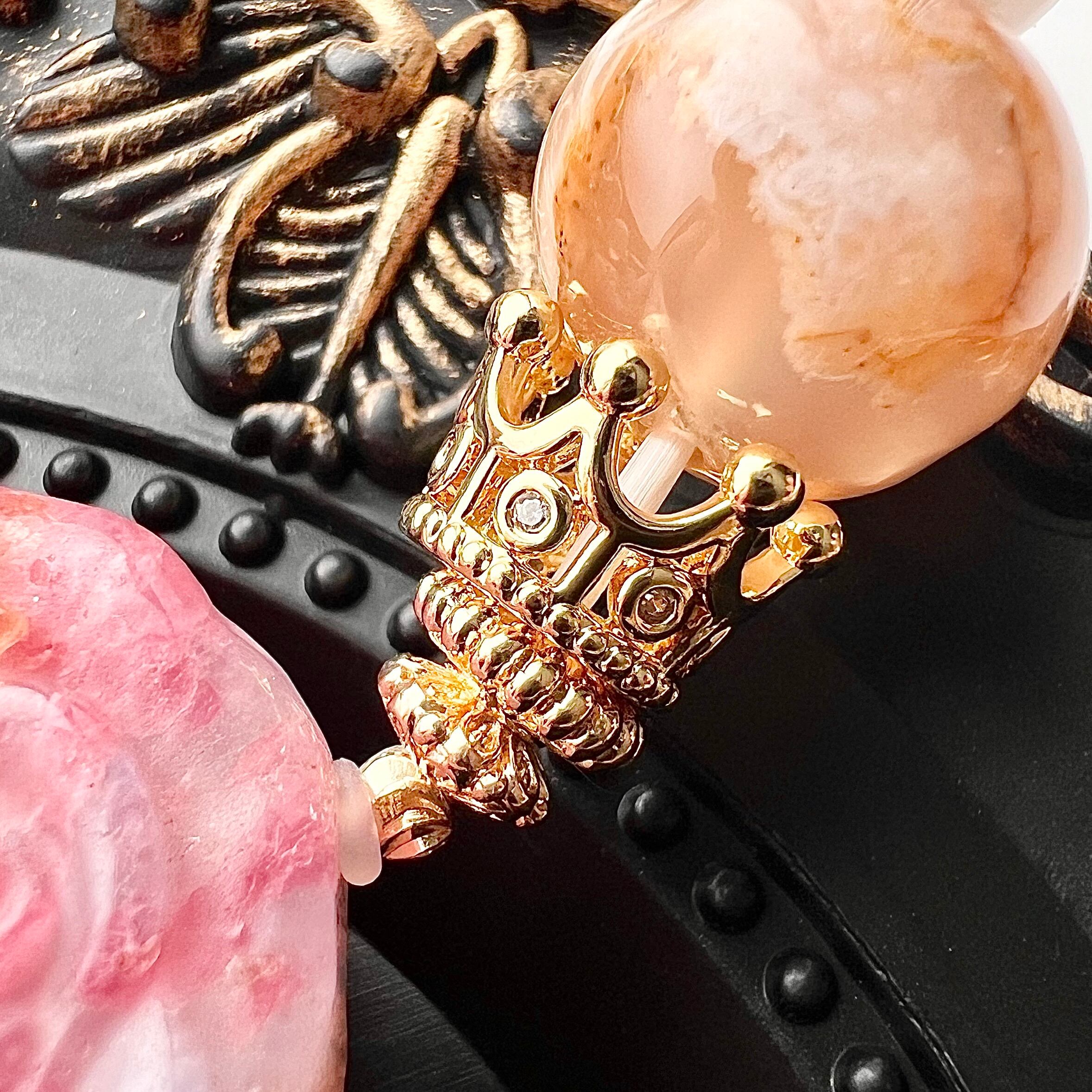 他にもアクセントとして王冠のゴールドパーツやローズクォーツのリボンなどをあしらいました