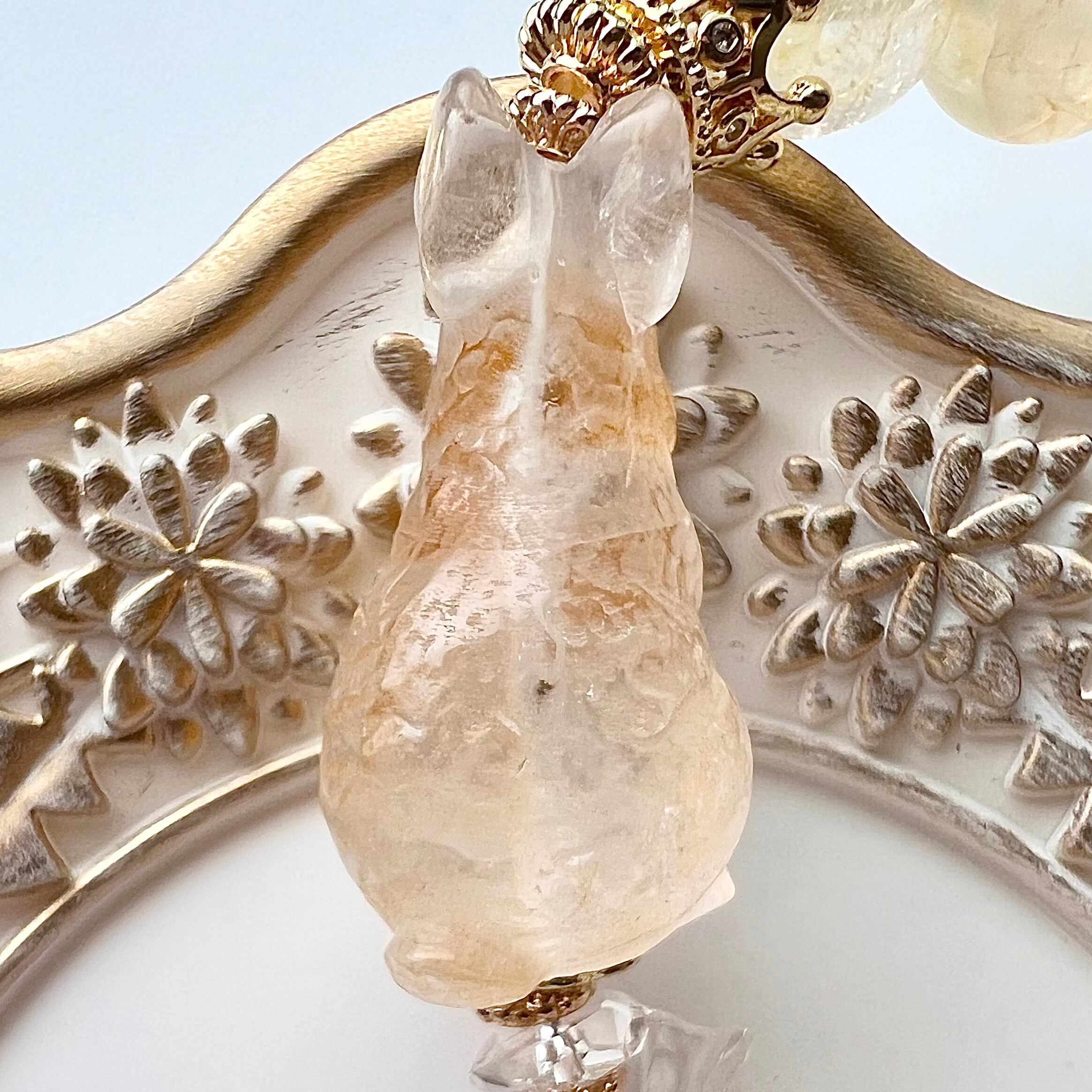 王冠とリボンのシリーズ、ライモナイトインクォーツのウサギのデザインブレスレットです