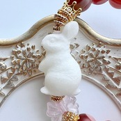 ホワイトジャスパーのウサギと、ローズクォーツの苺のデザインブレスレットです