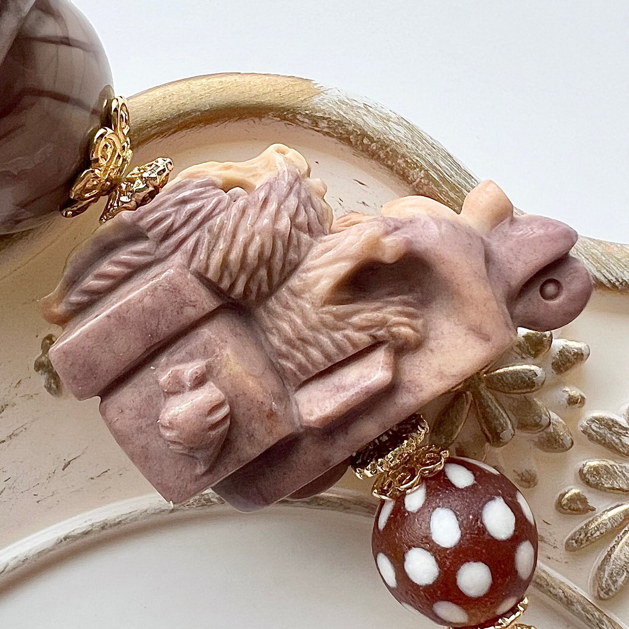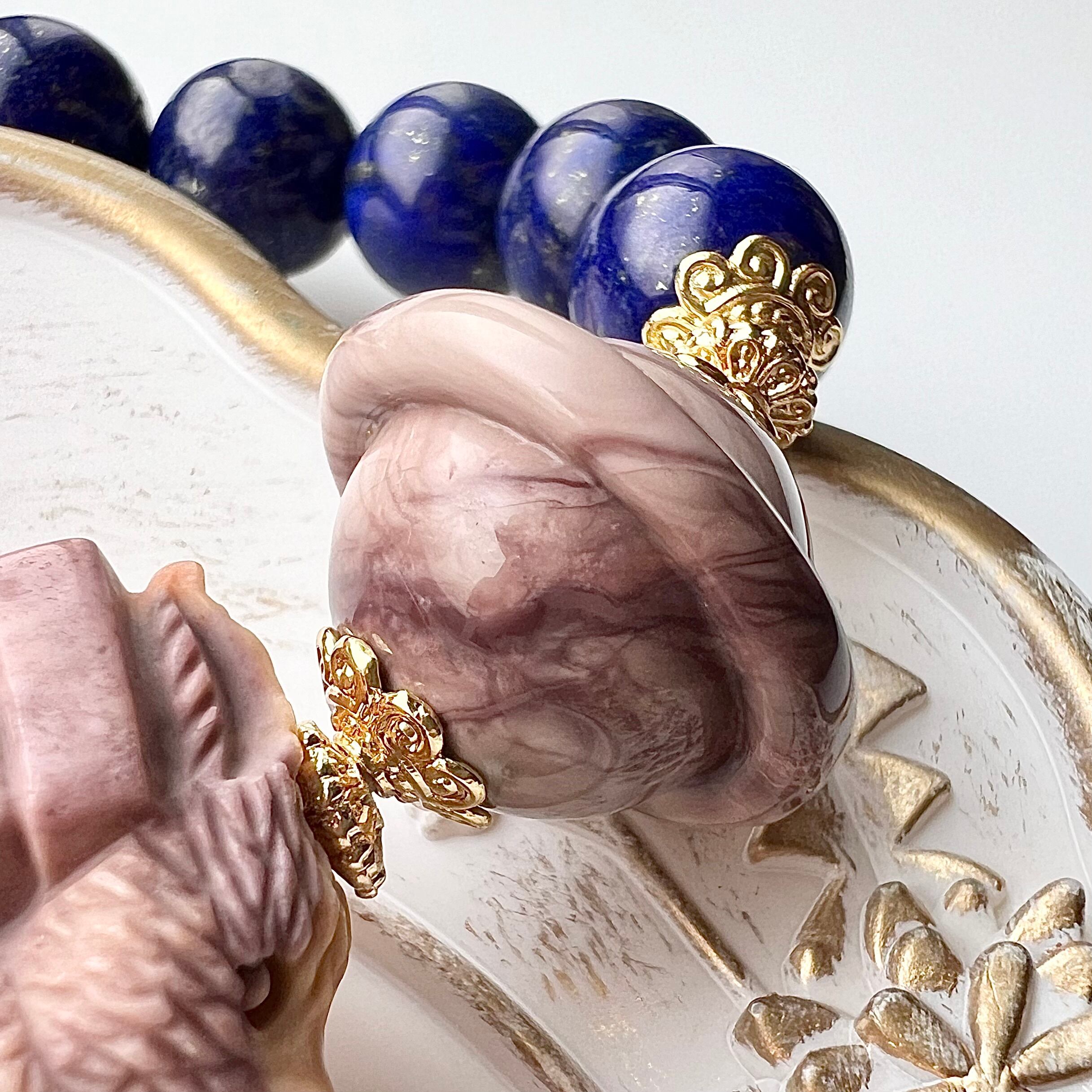 アラシャン瑪瑙の惑星とバイクに乗ったウサギ、ラピスラズリのデザインブレスレットです