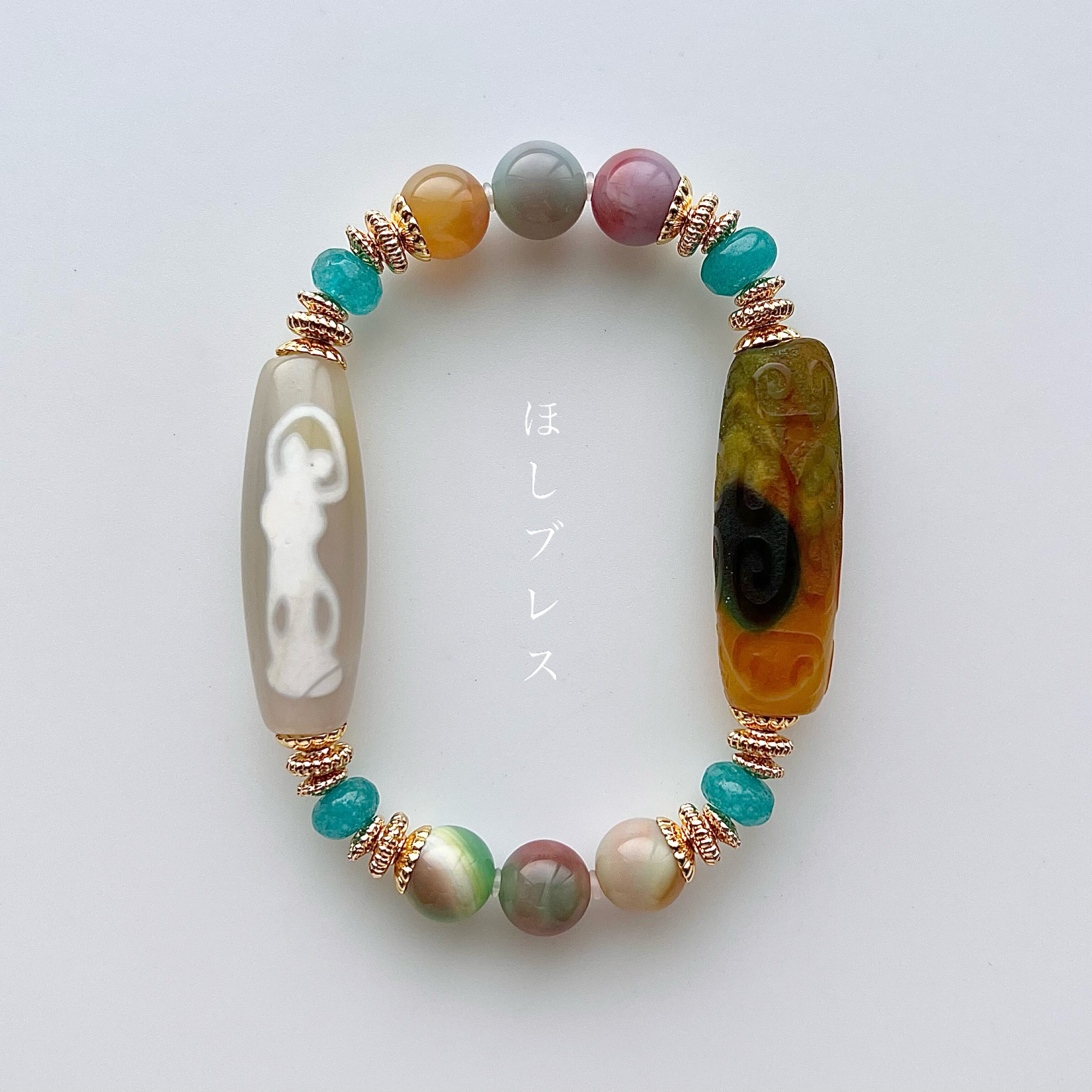 回紋天珠と弁財天天珠のデザインブレスレットです