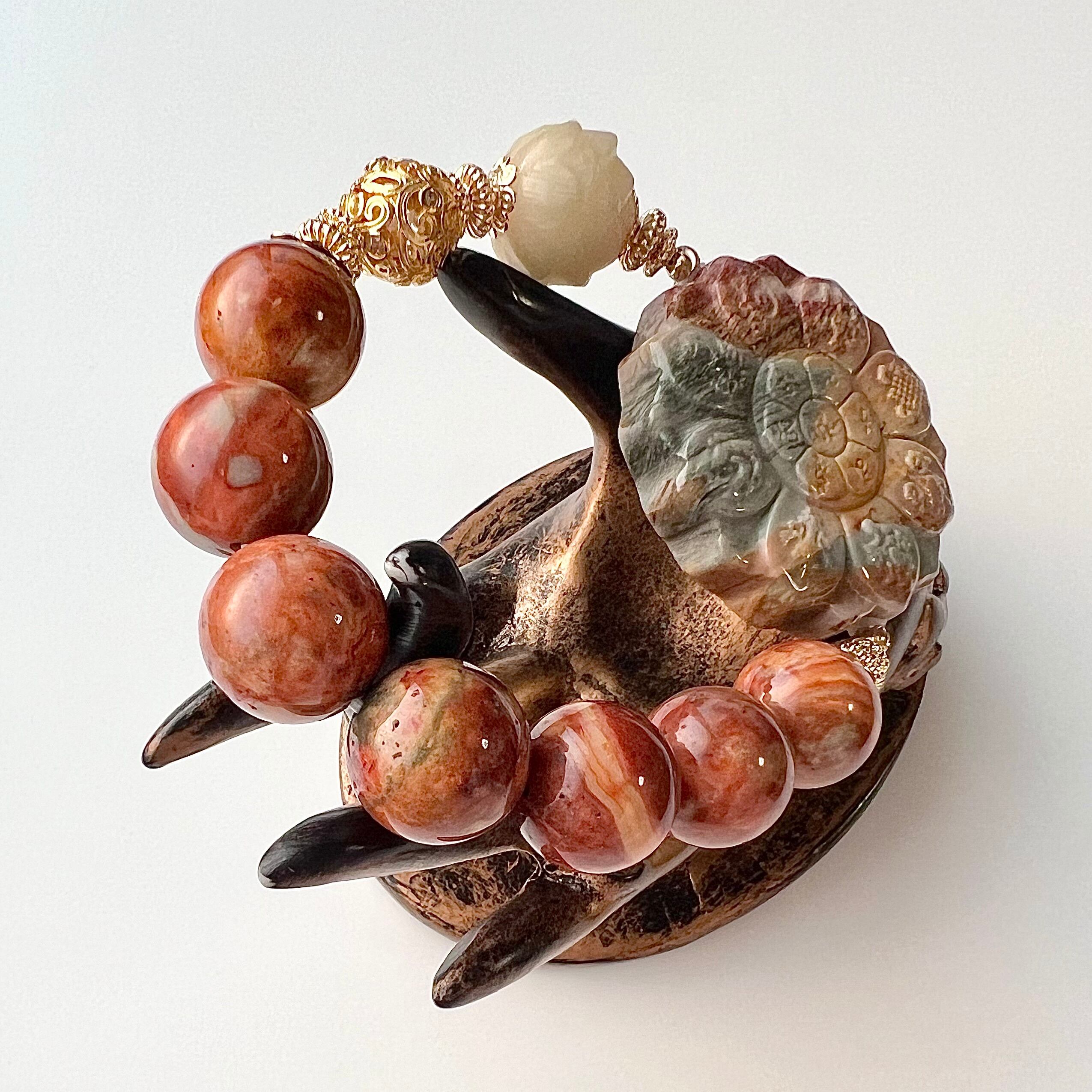 大きな蓮華座彫刻がメインのアラシャン瑪瑙デザインブレスレットです