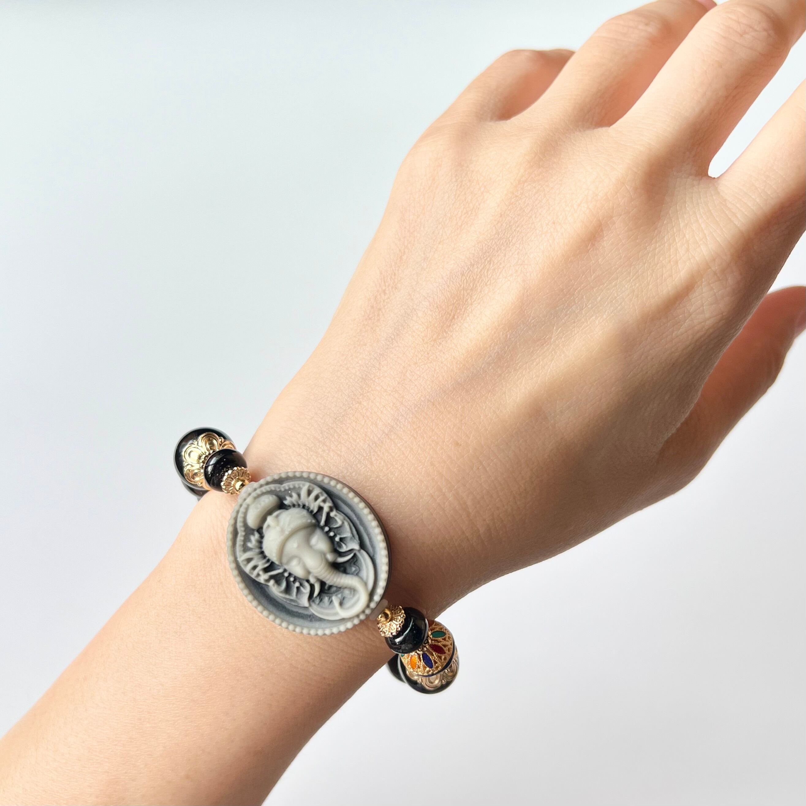 太極石のガネーシャとオニキスのデザインブレスレットです