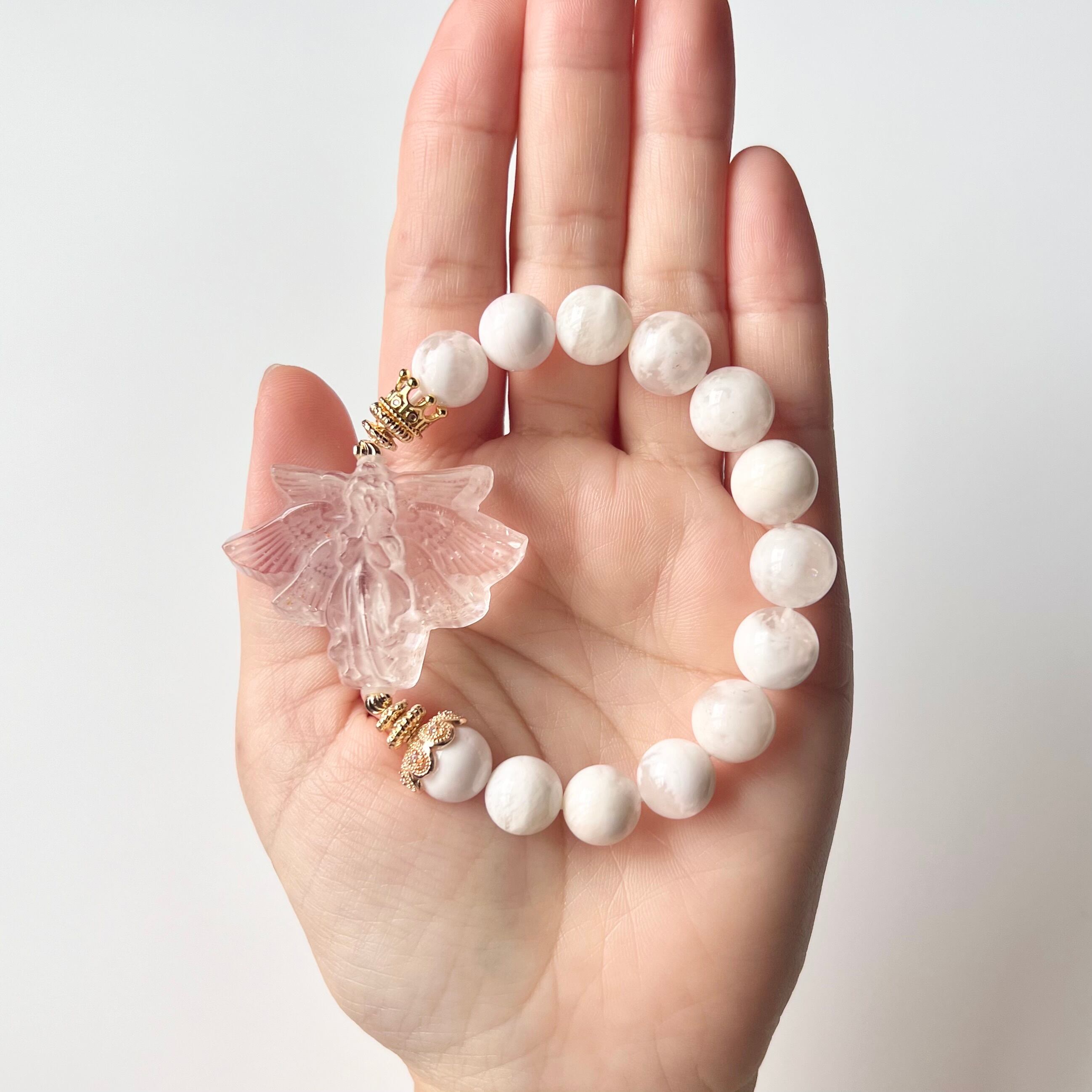 水晶の天使彫刻とホワイトセリサイトインクォーツのデザインブレスレットです