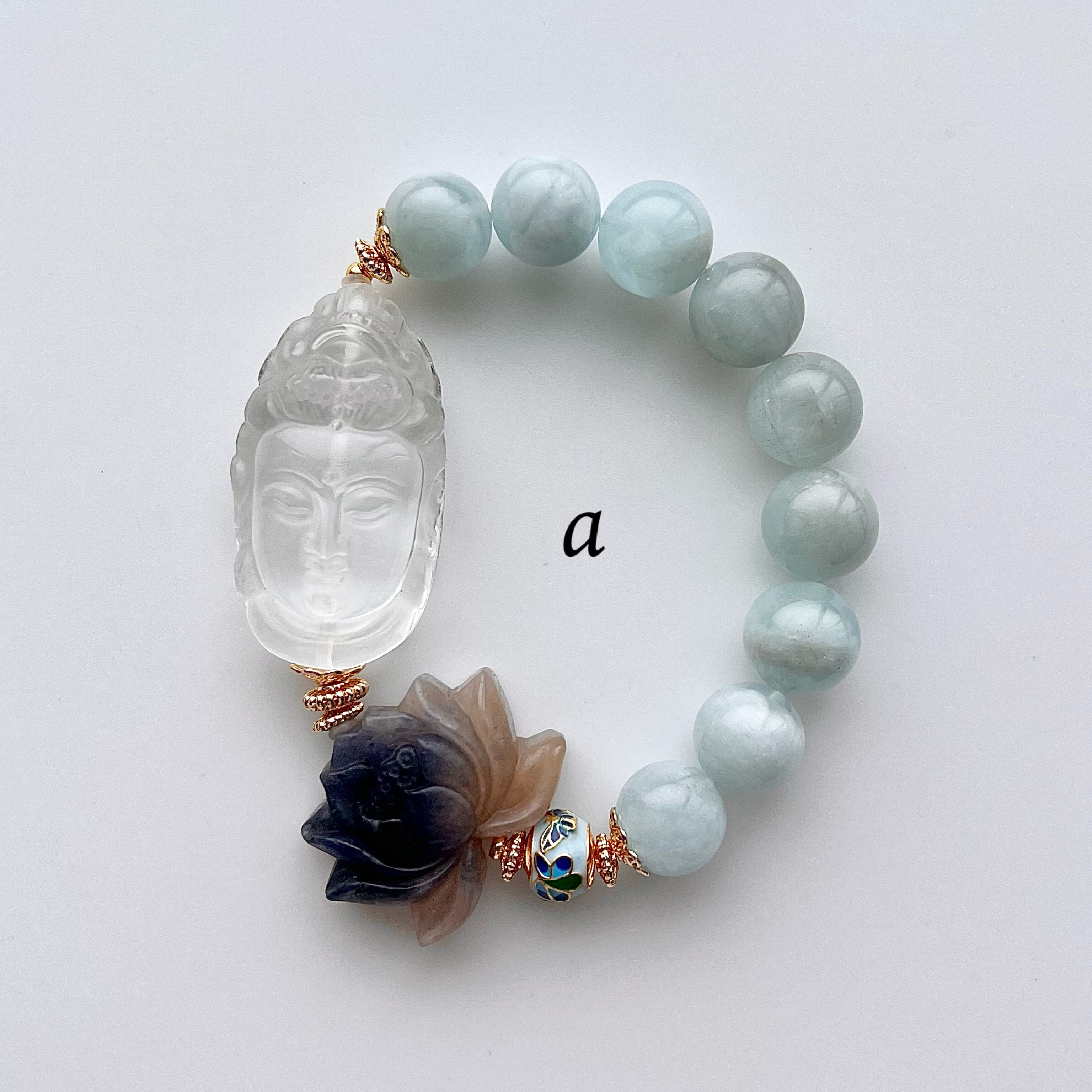 溶錬水晶 観音菩薩 ソーダライト 蓮花 アクアマリン 天然石 ブレスレット