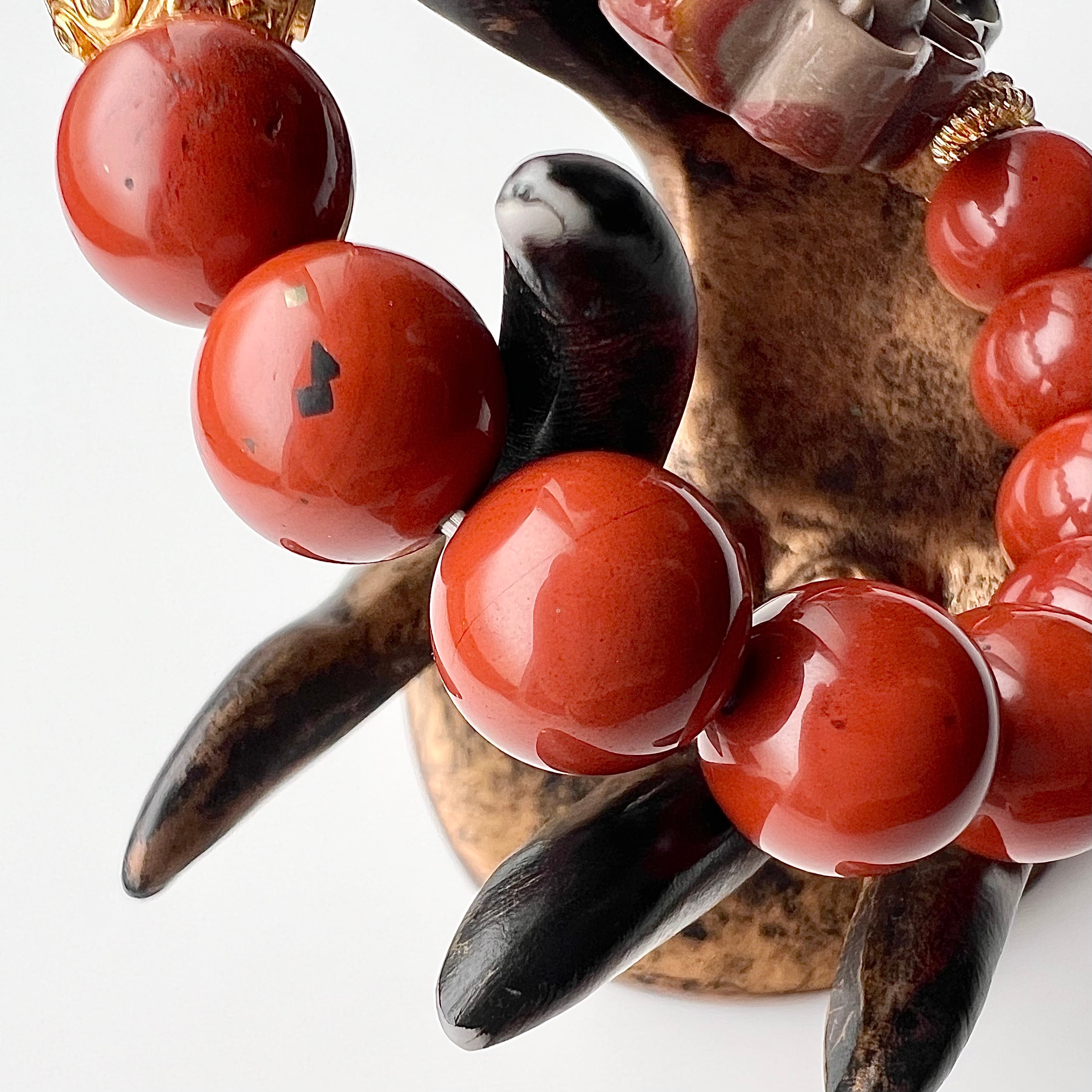 このホオズキに似たレッドジャスパーの朱色はアジア圏の寺院などの建造物を思わせ、オリエンタルな雰囲気があります
