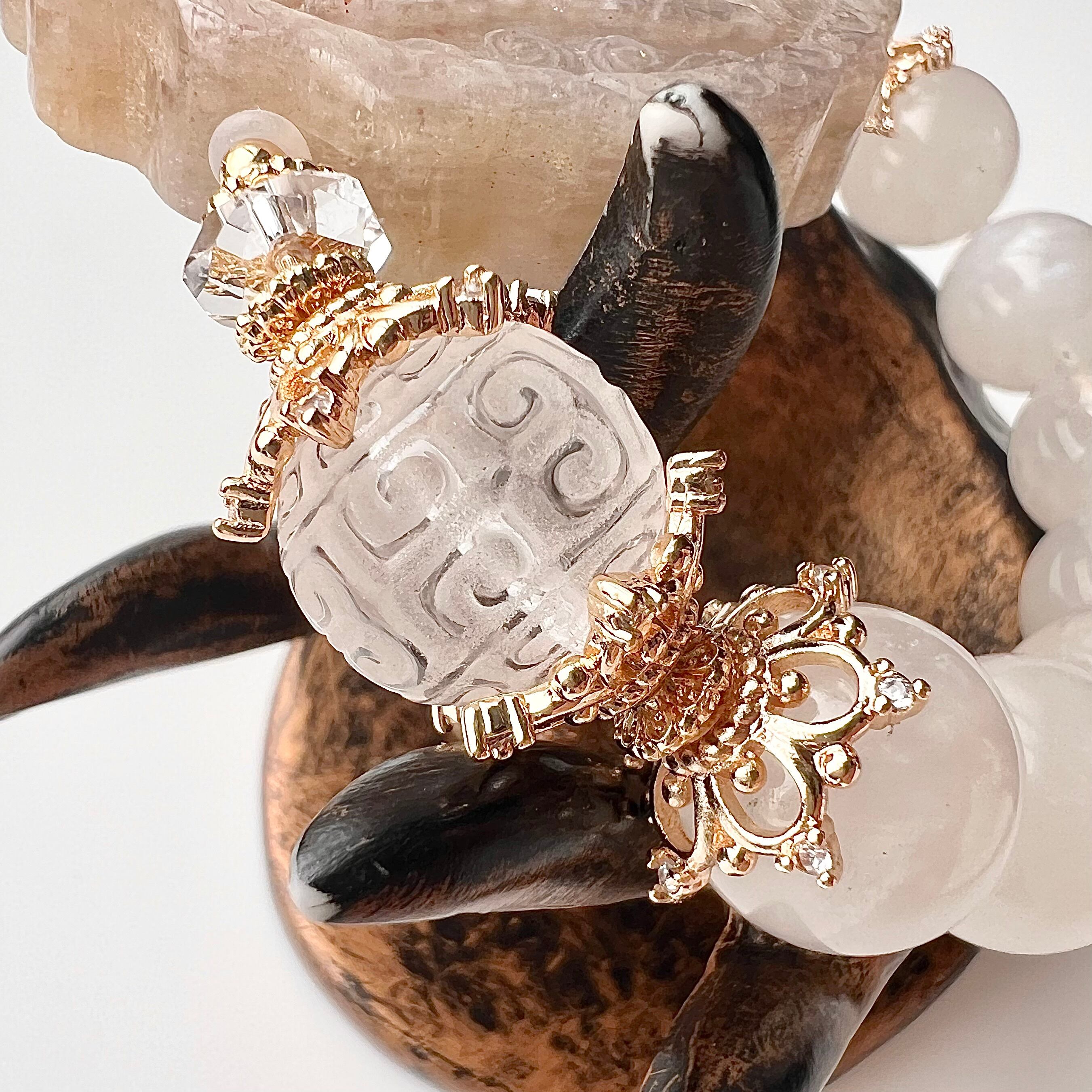 大きなバジュラ彫刻がメインのムーンストーンデザインブレスレットです