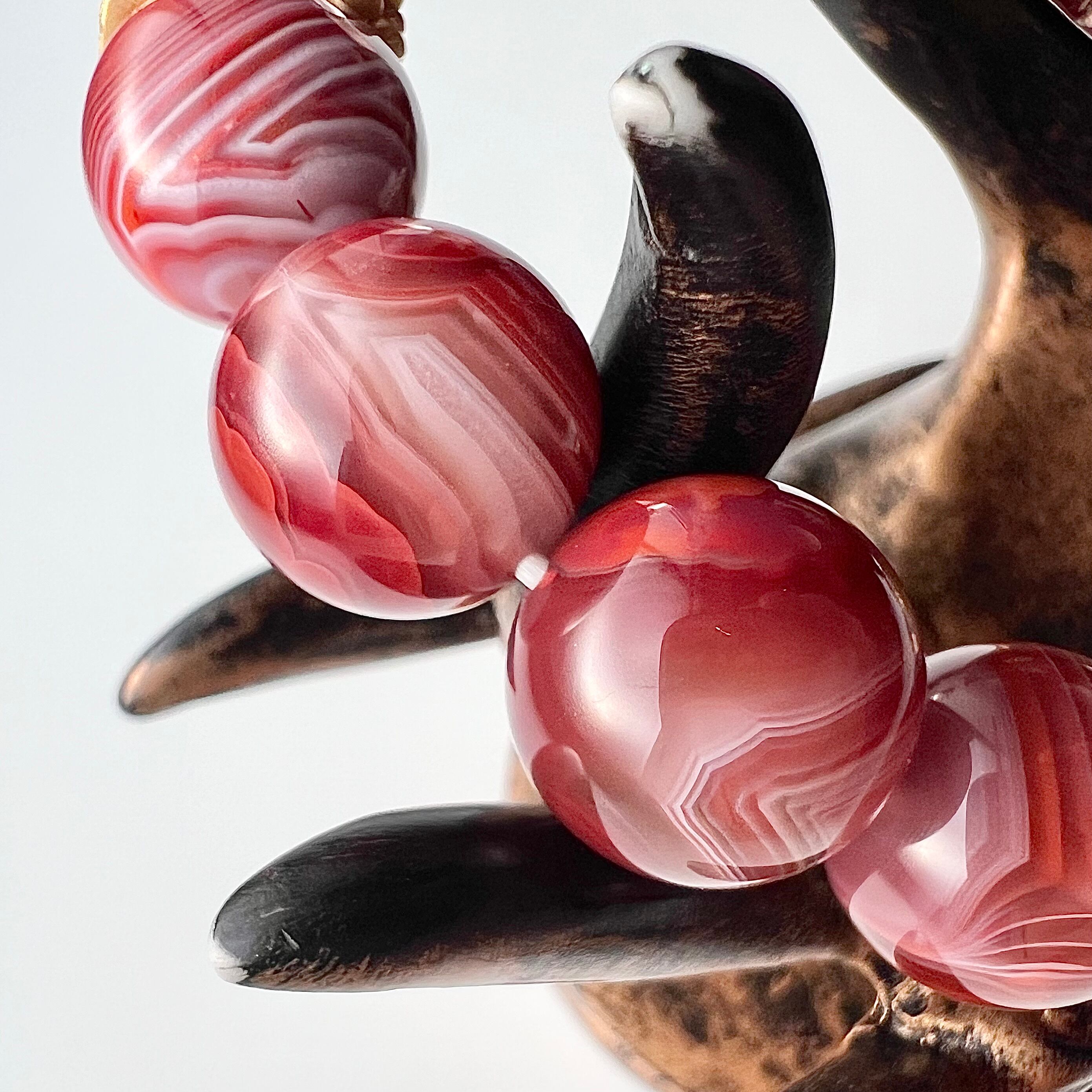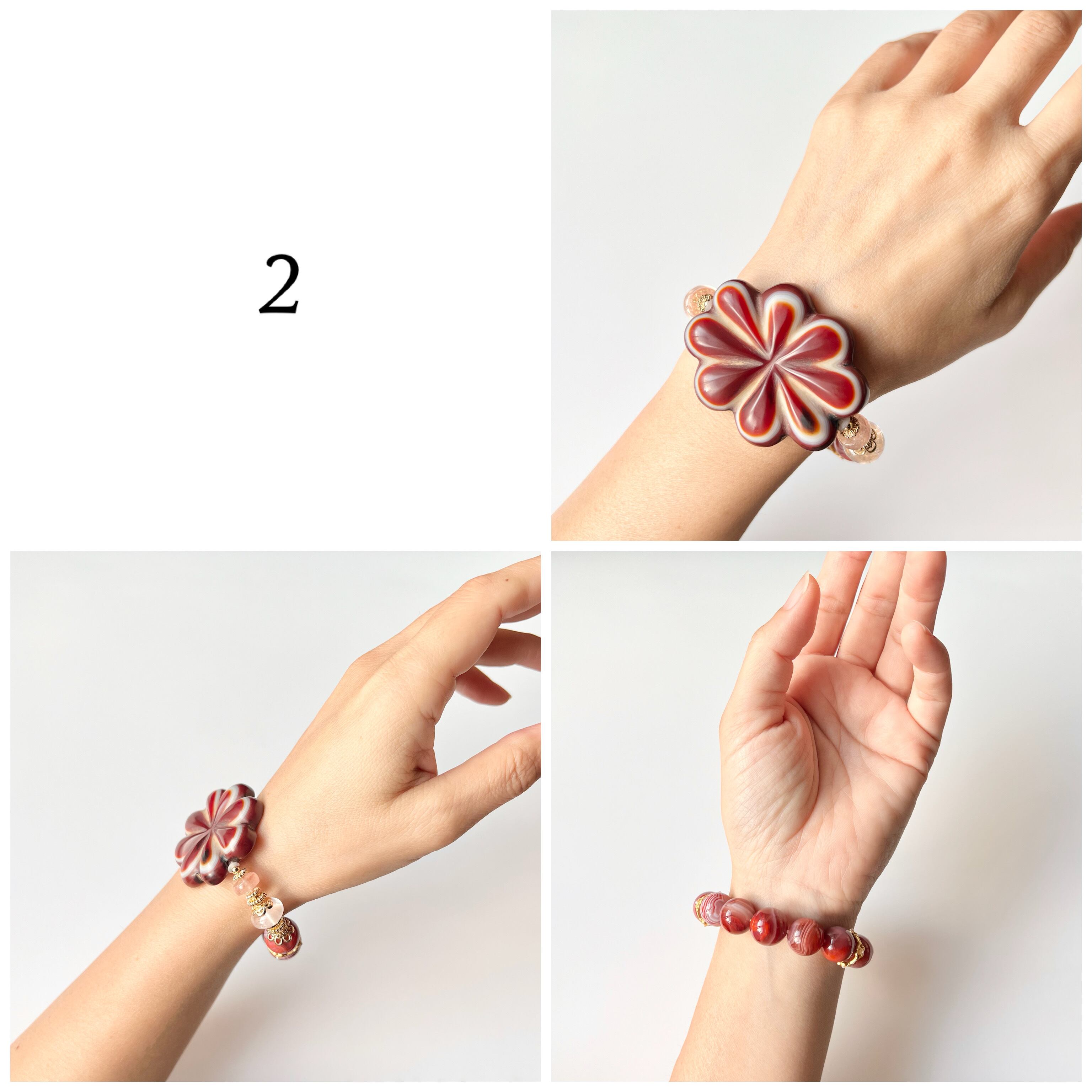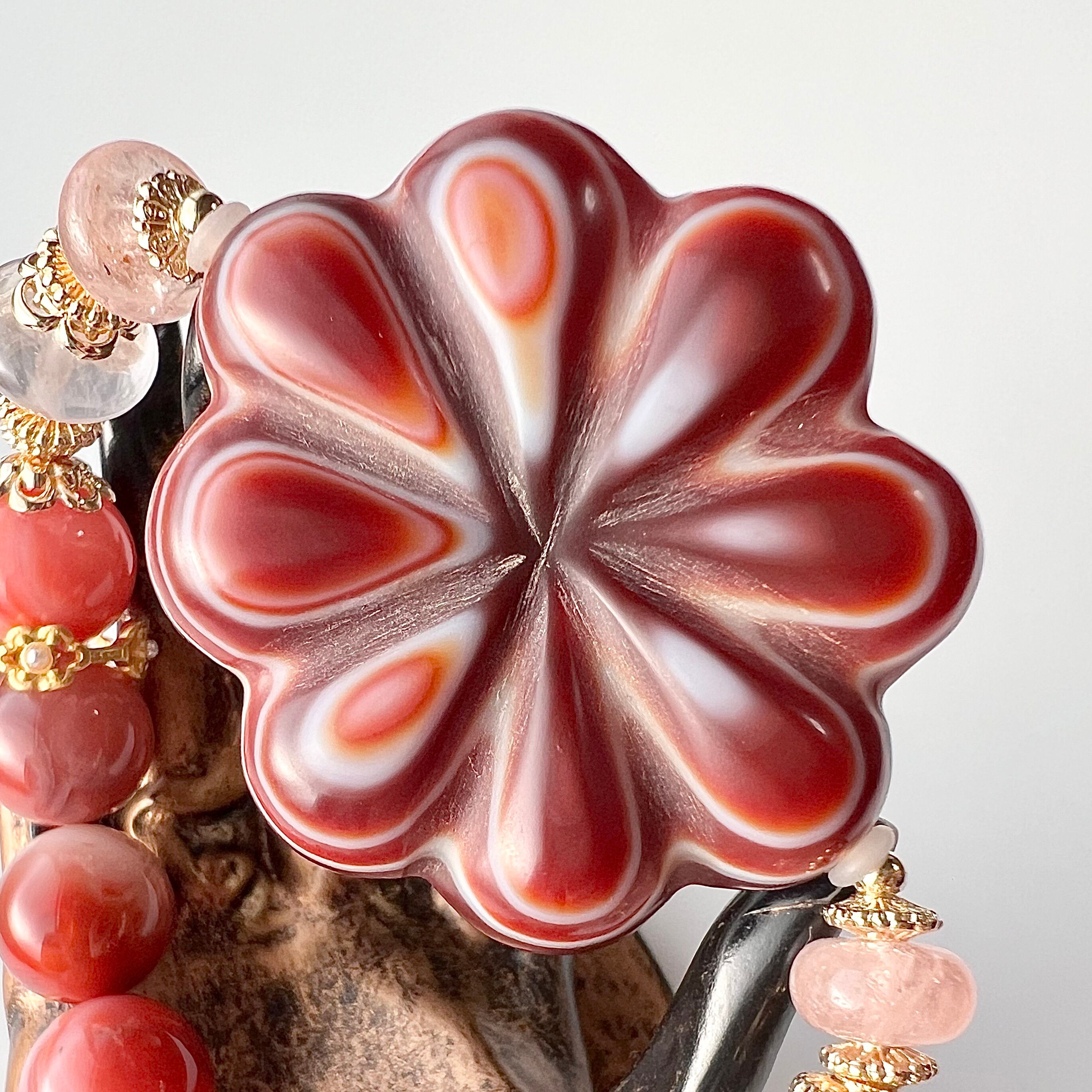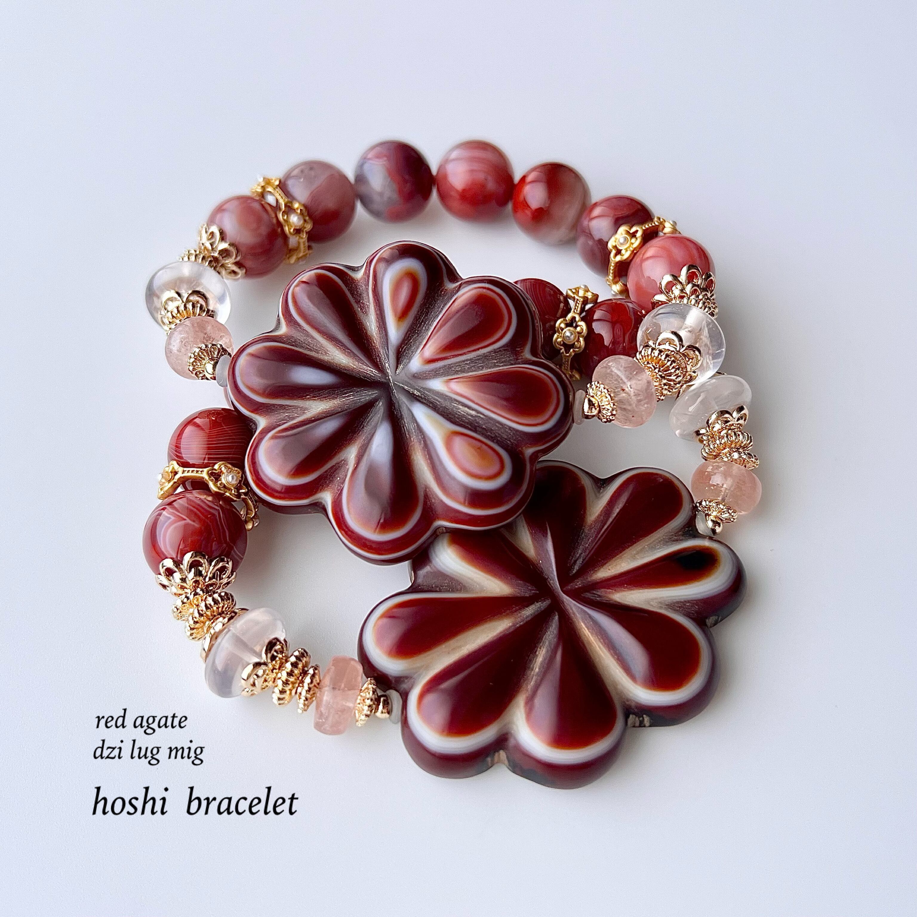 蓮花羊眼板天珠 赤縞瑪瑙 天然石 ブレスレット