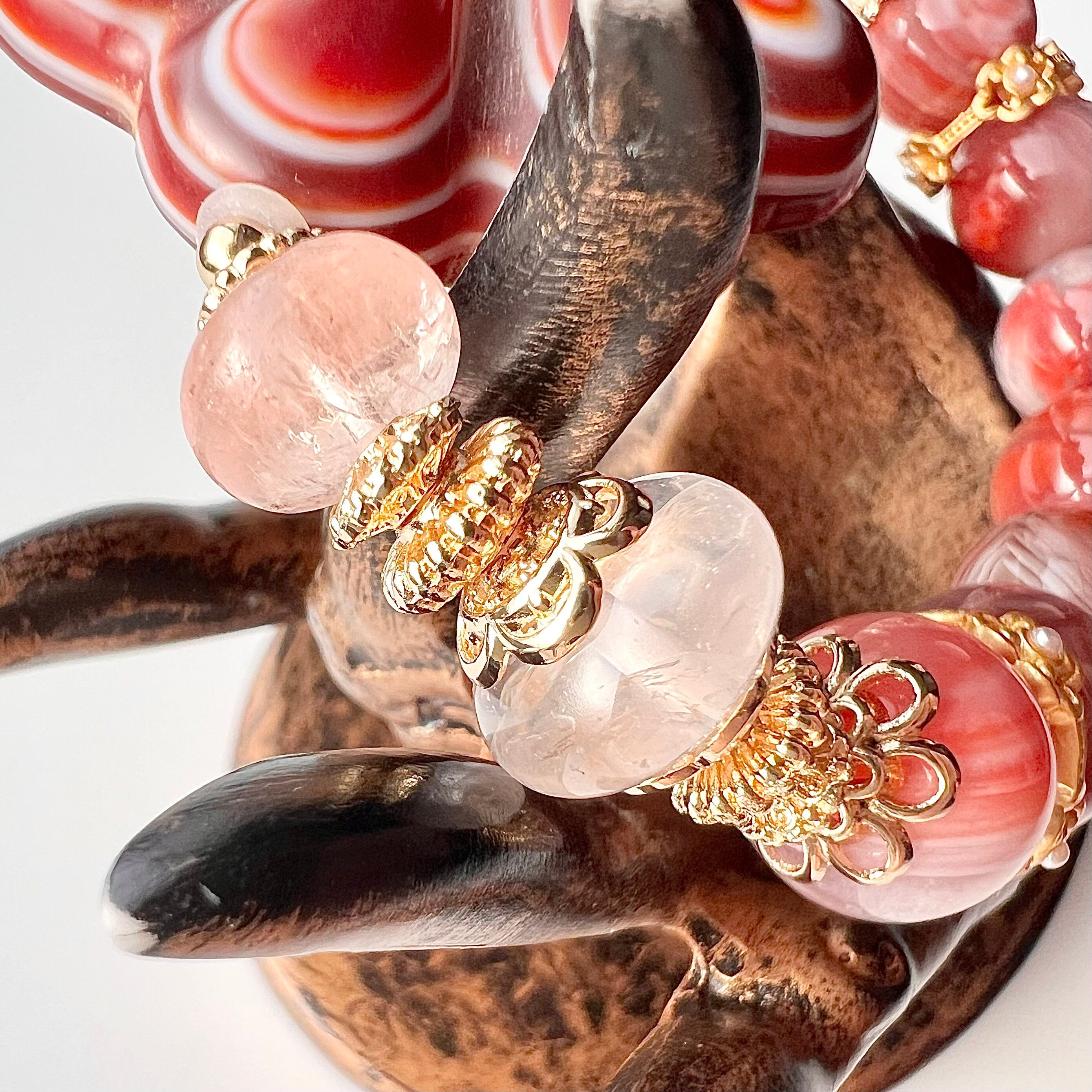 他にもローズクォーツのボタンカットやゴールドパーツをあしらい華やかに仕上げました
