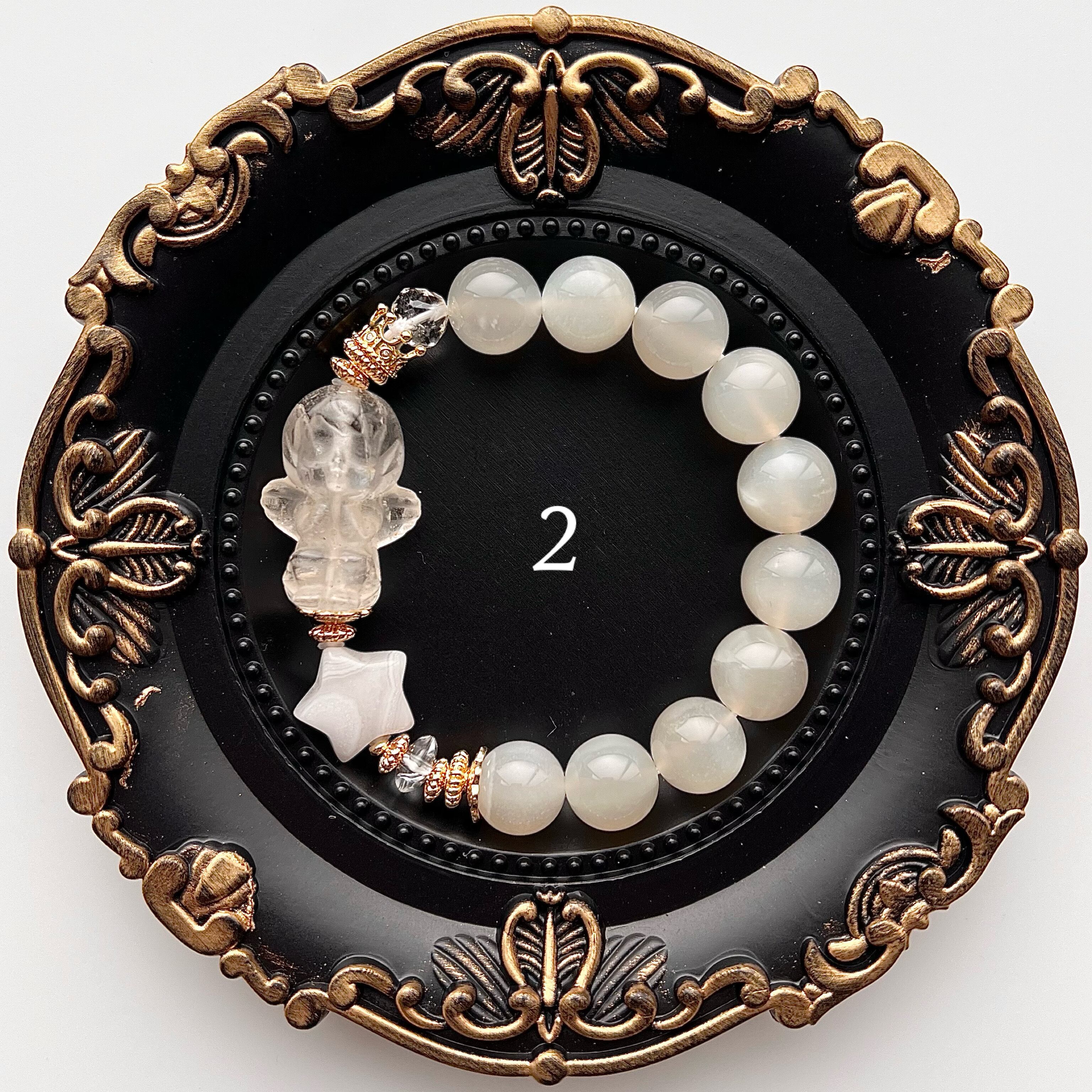 水晶の天使とホワイトムーンストーンのデザインブレスレットです