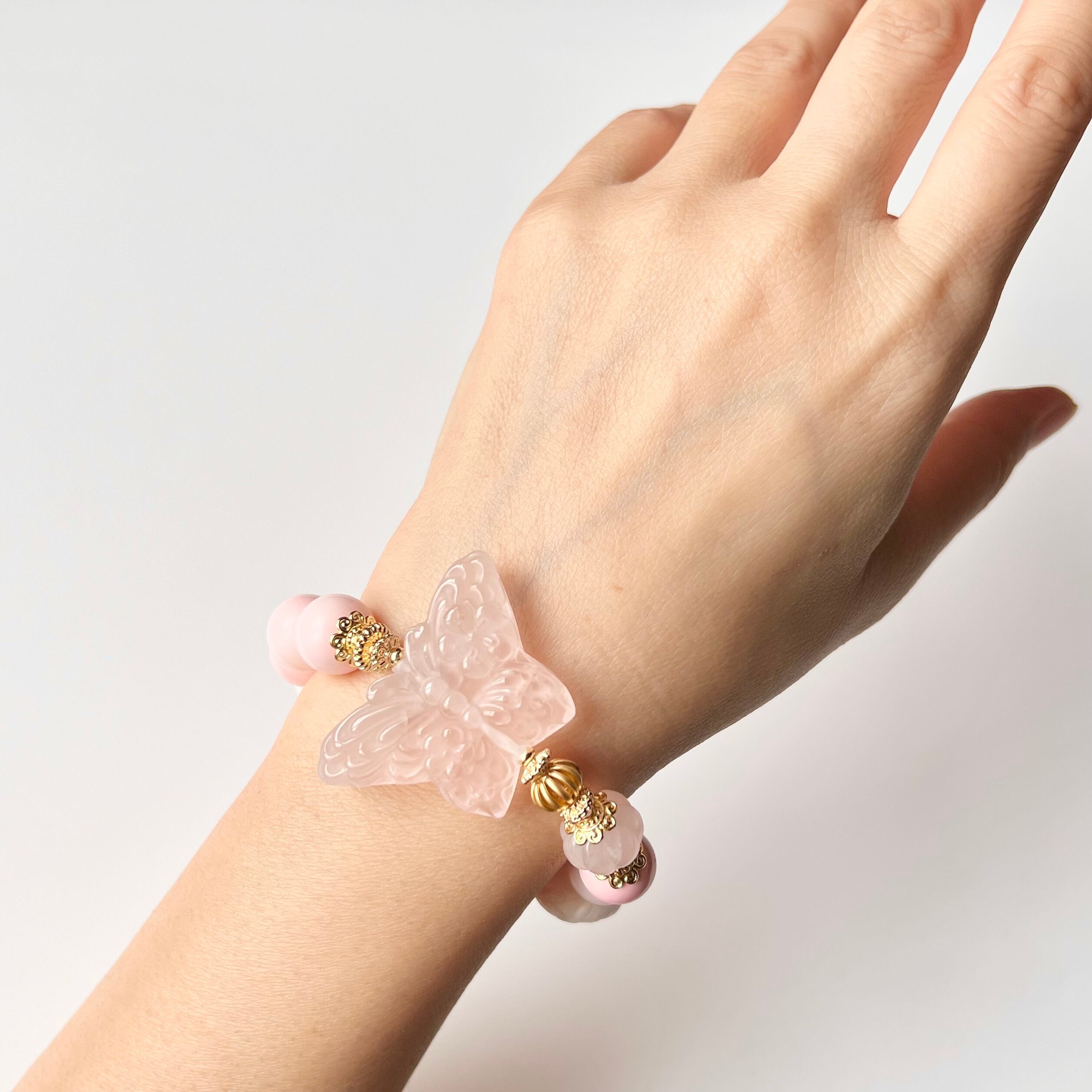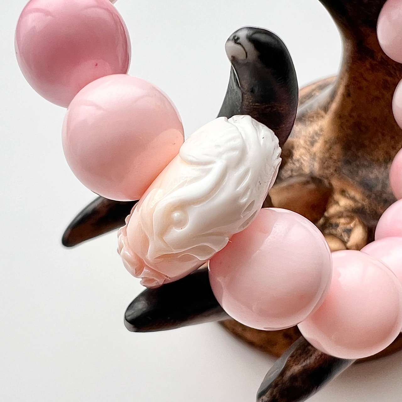 ローズクォーツ 蝶 クィーンコンクシェル 鳳凰 牡丹 天然石 ブレスレット