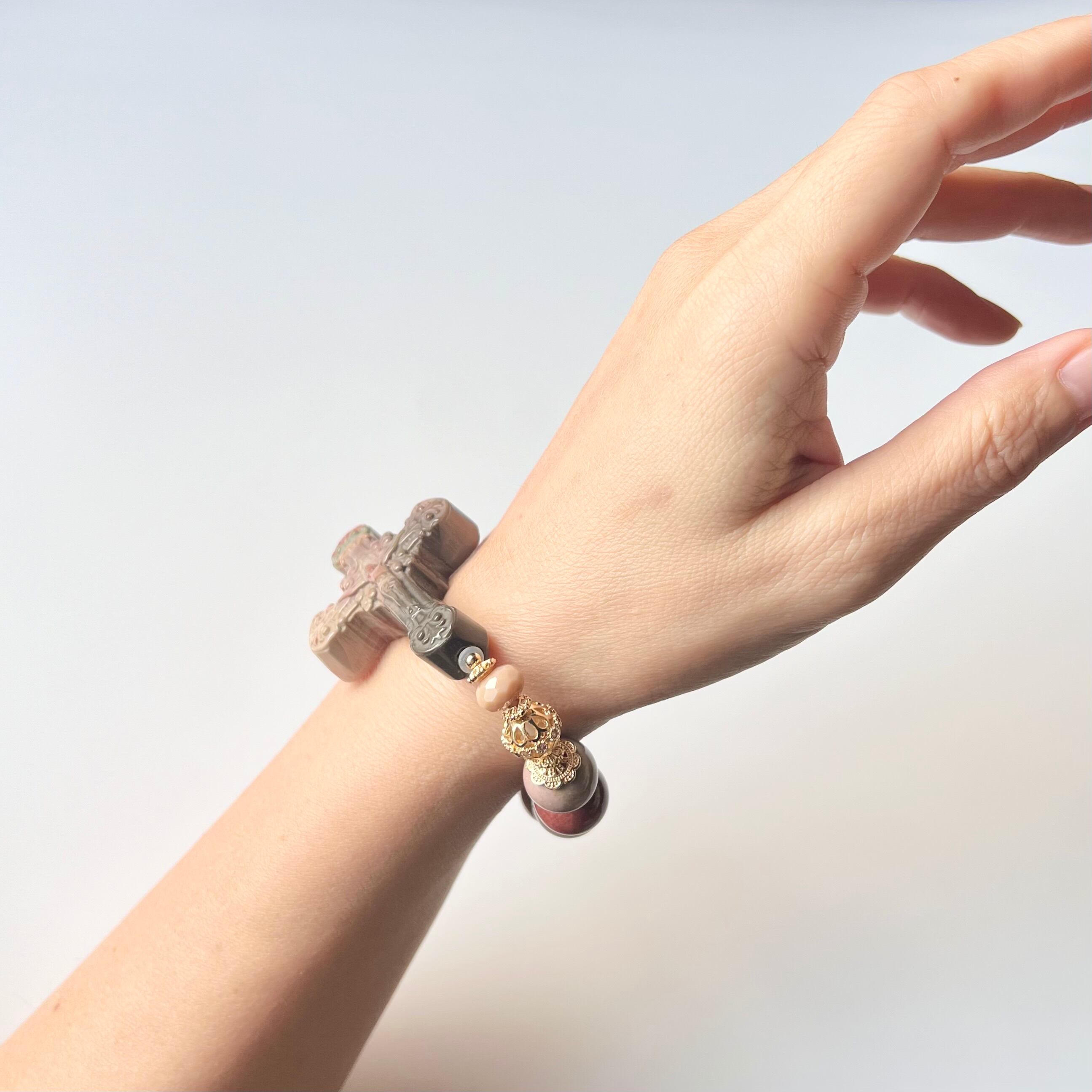 大きな十字架がメインのアラシャン瑪瑙デザインブレスレットです