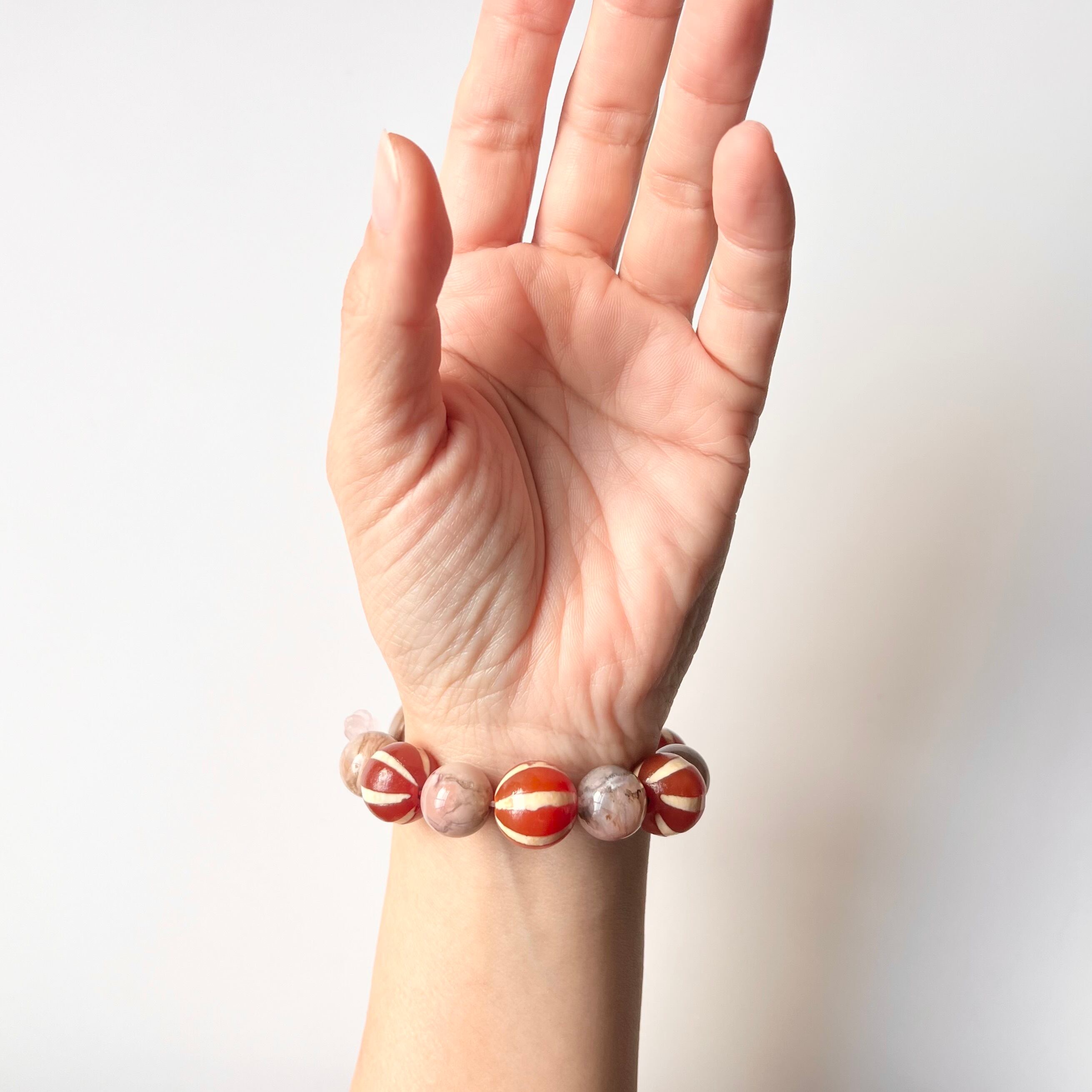 アラシャン瑪瑙 メリーゴーランド 南瓜珠線珠 天然石 ブレスレット
