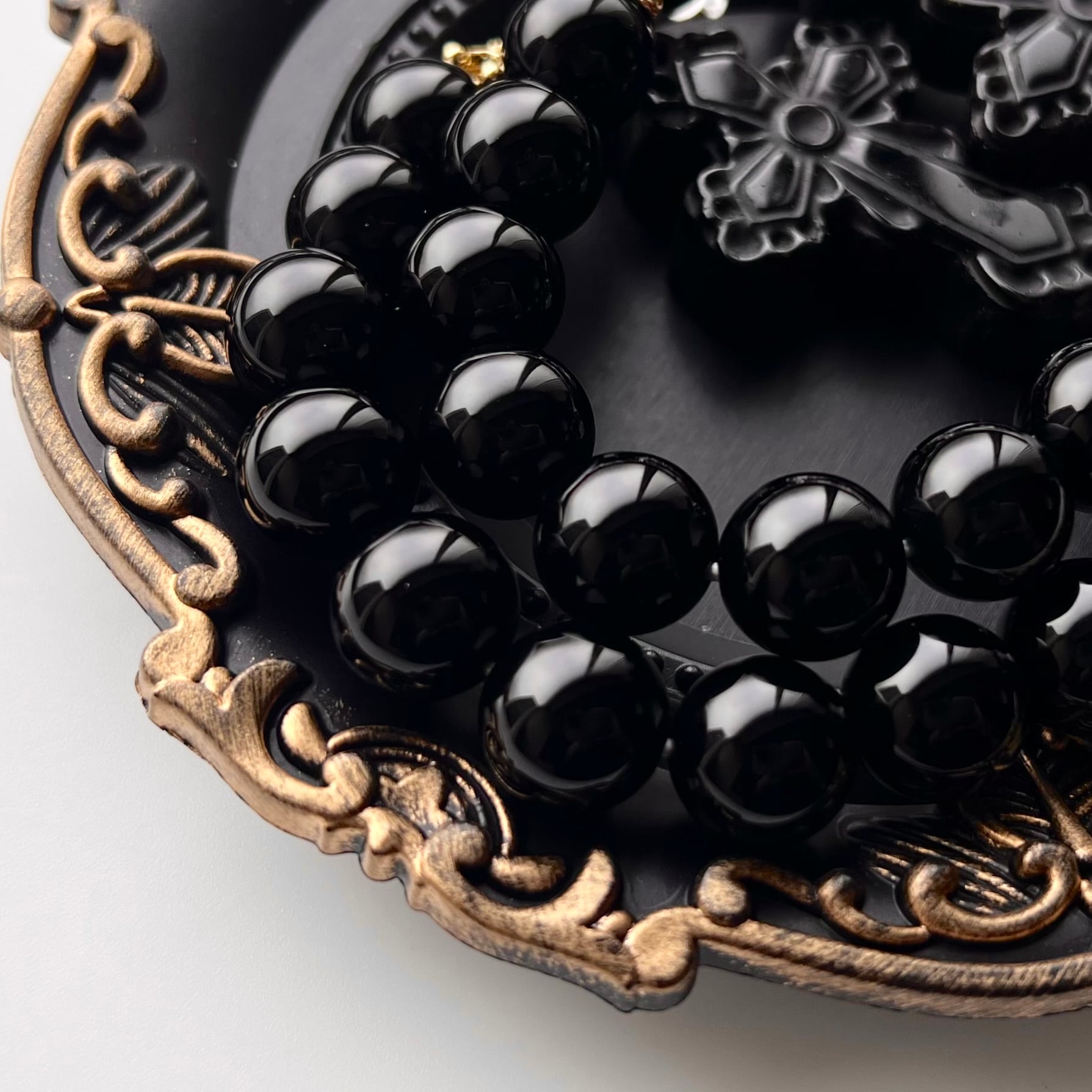 人工モリオン 十字架 水晶リボン オニキス 天然石 ブレスレット