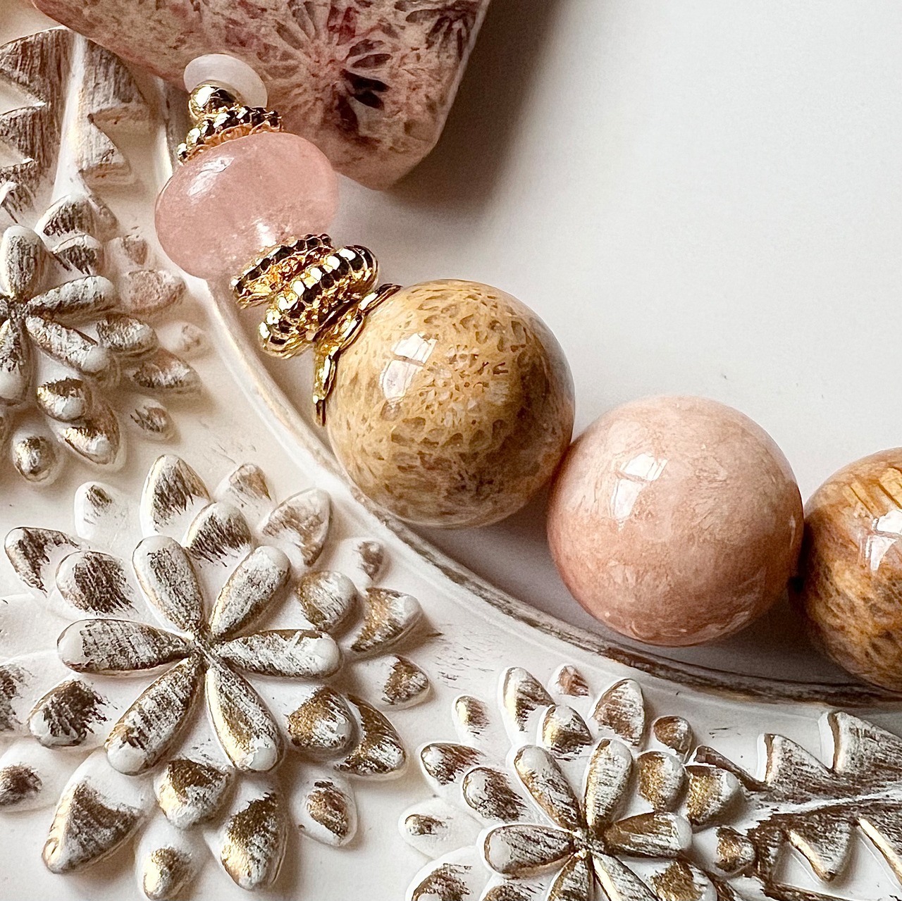 フォッシルコーラルは数千年から何百万年前もの大変古い珊瑚の化石で、長い時間をかけシリカやカルサイトと共生したものです