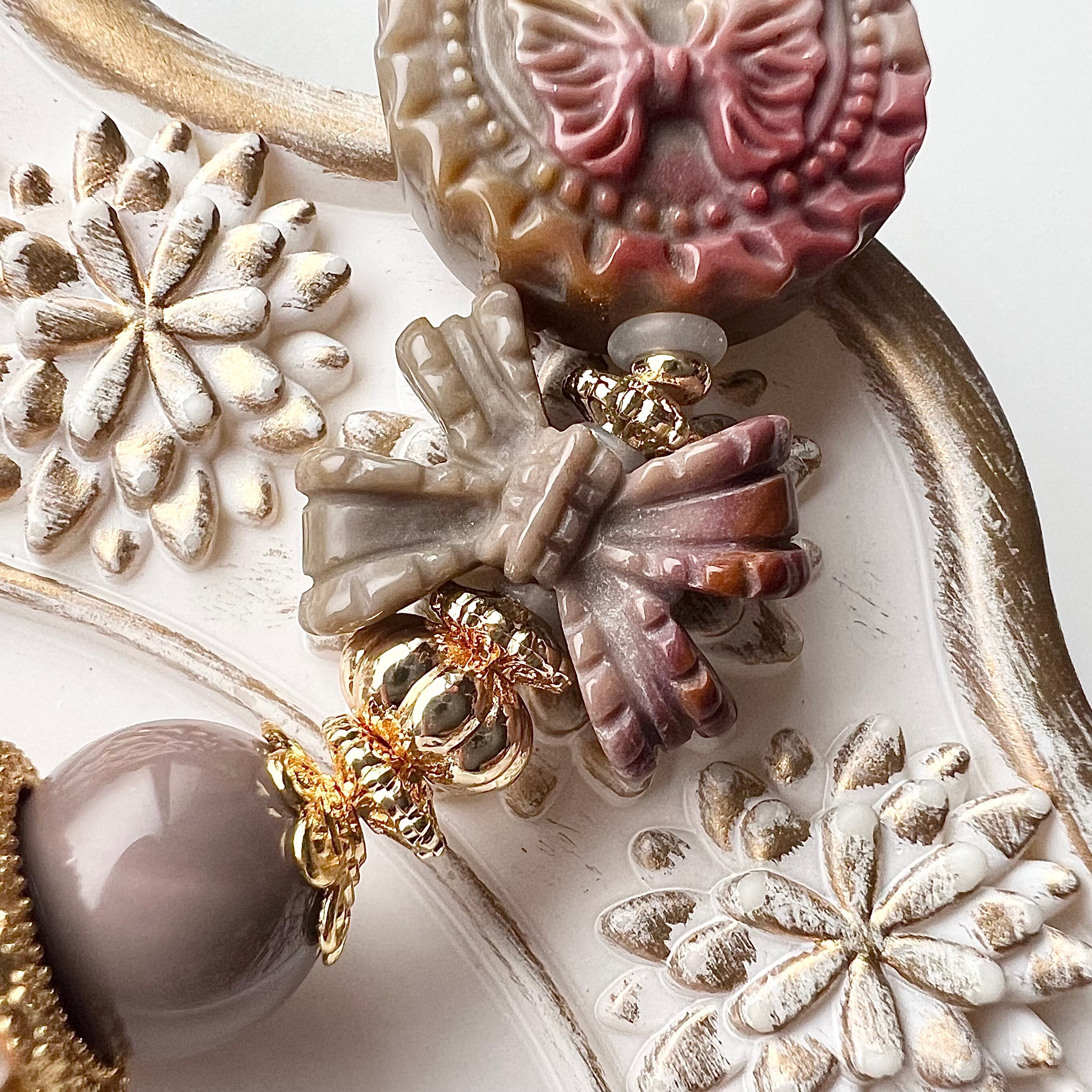 他にもアラシャン瑪瑙のリボンや王冠のゴールドパーツをあしらい華やかに仕上げました