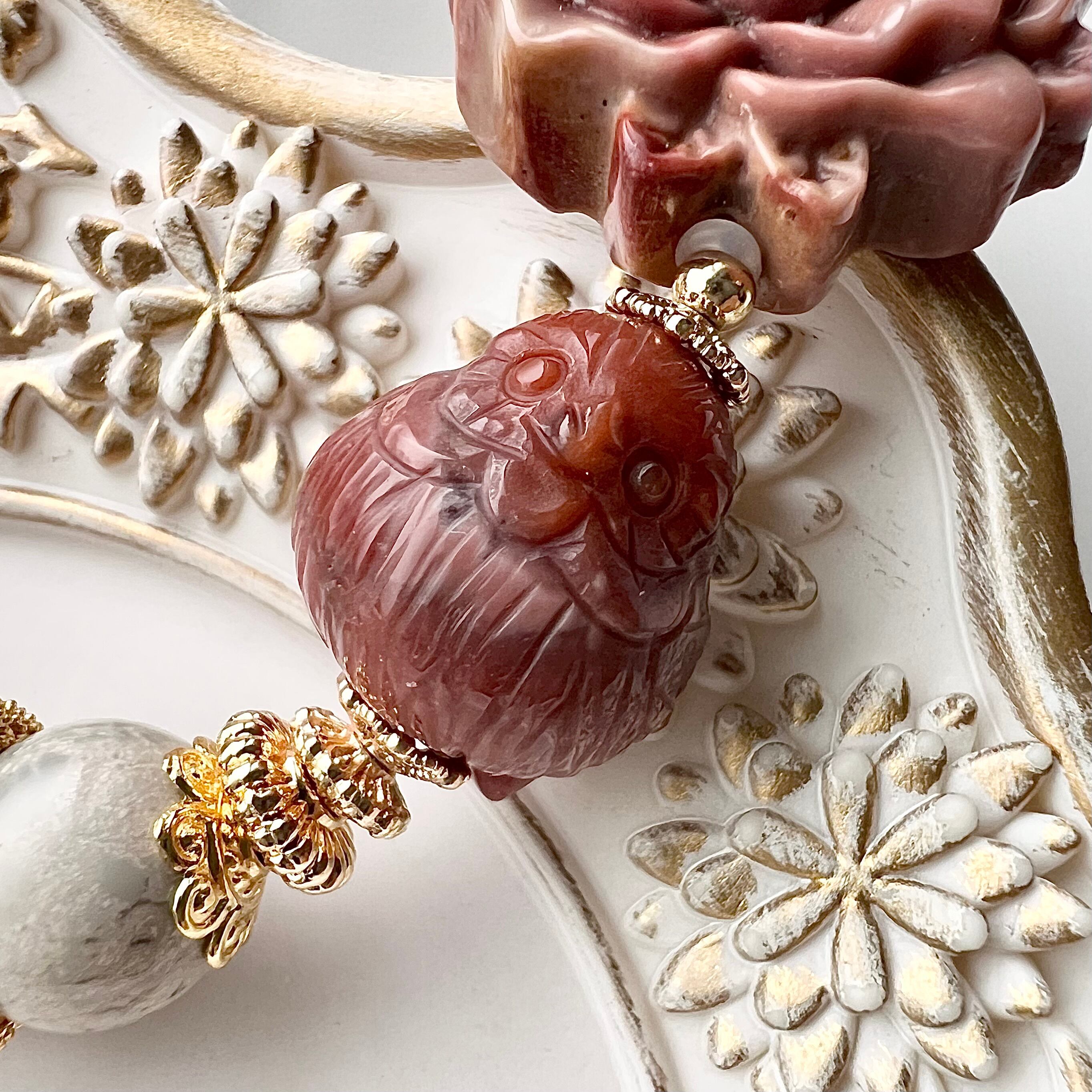 ③ アラシャン瑪瑙 薔薇 小鳥 天然石 ブレスレット