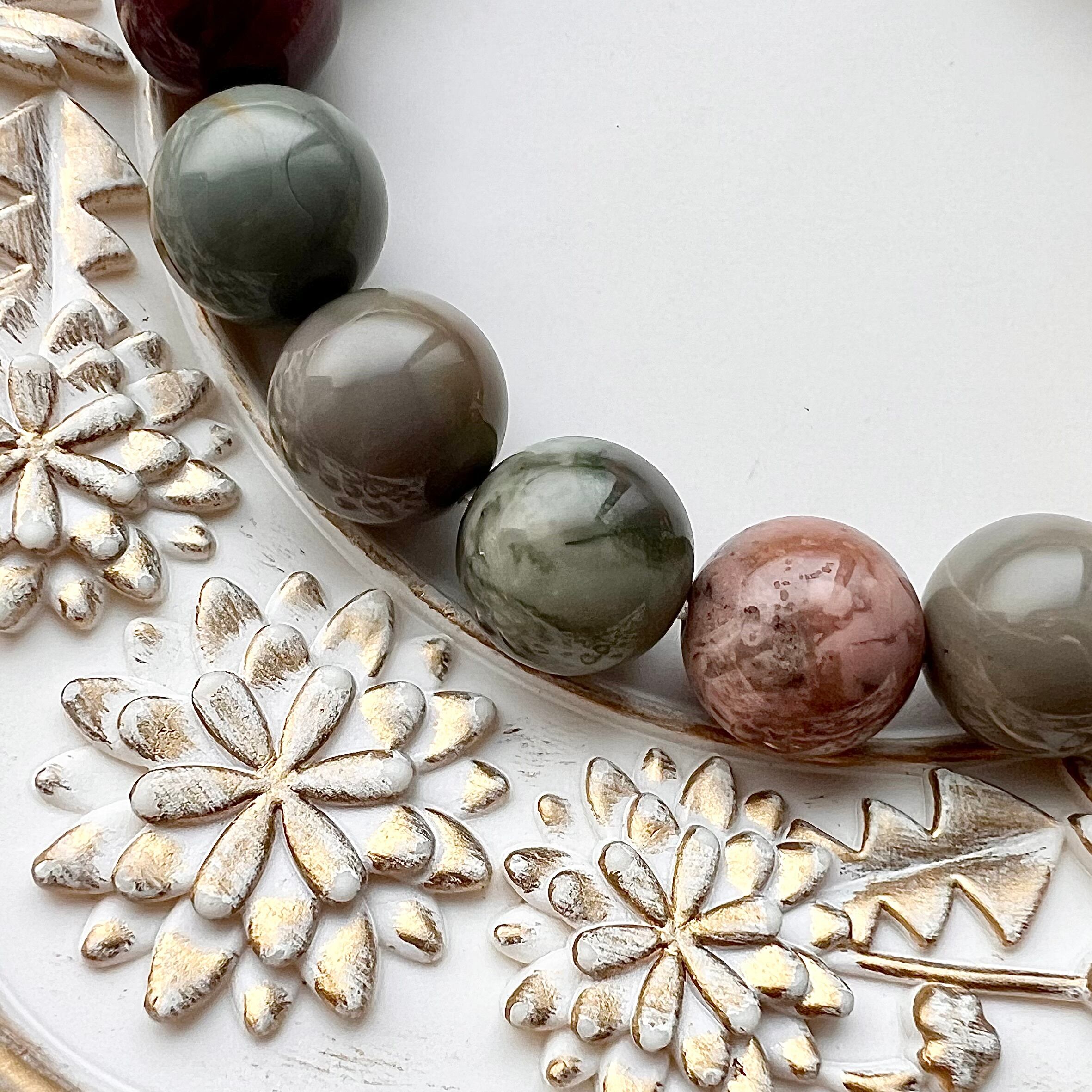 ④ アラシャン瑪瑙 薔薇 小鳥 天然石 ブレスレット