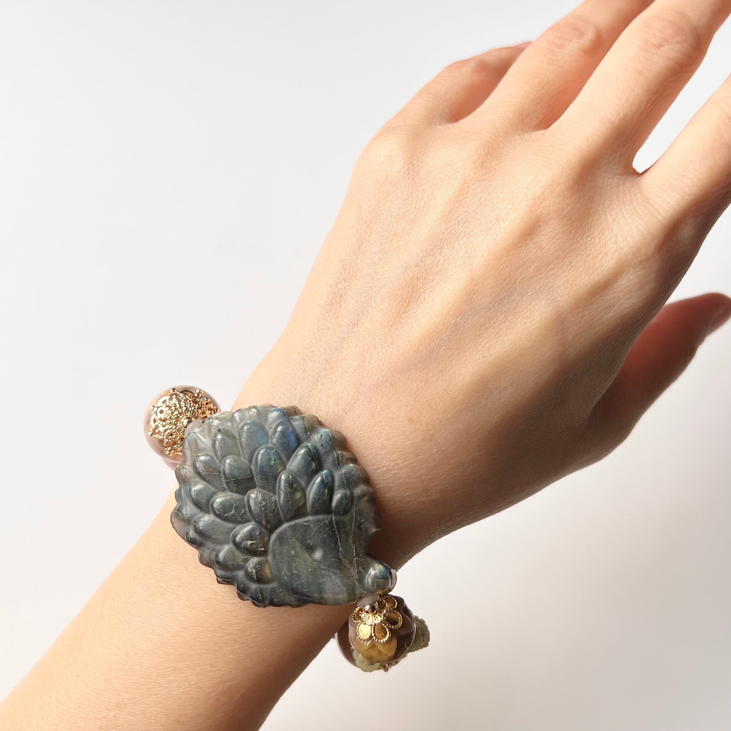 レインボーラブラドライトのハリネズミと大玉アラシャン瑪瑙のデザインブレスレットです