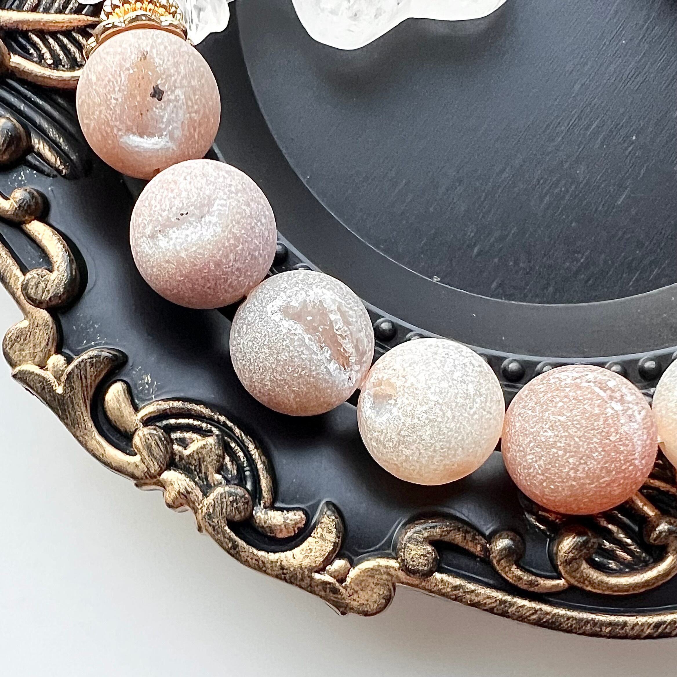 水晶 雪の結晶 笑口フロストアゲート 天然石 ブレスレット