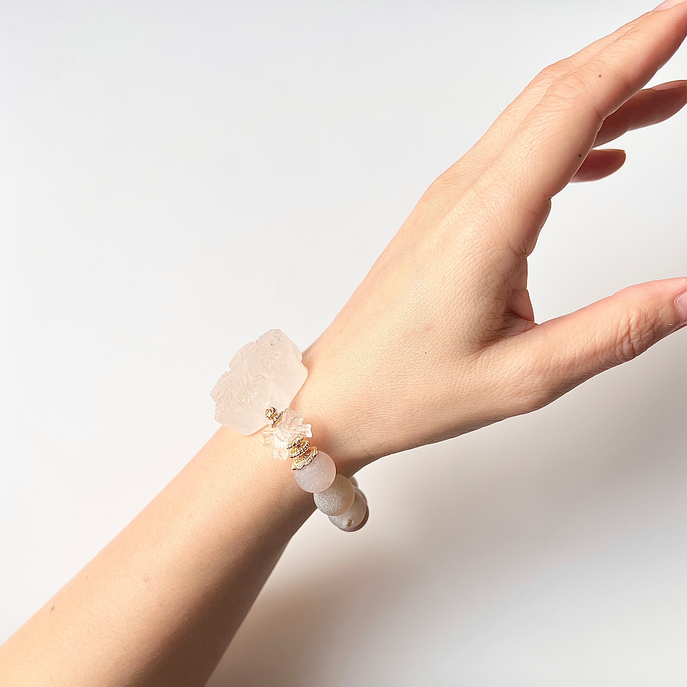 水晶の雪の結晶と笑口フロストアゲートのデザインブレスレットです