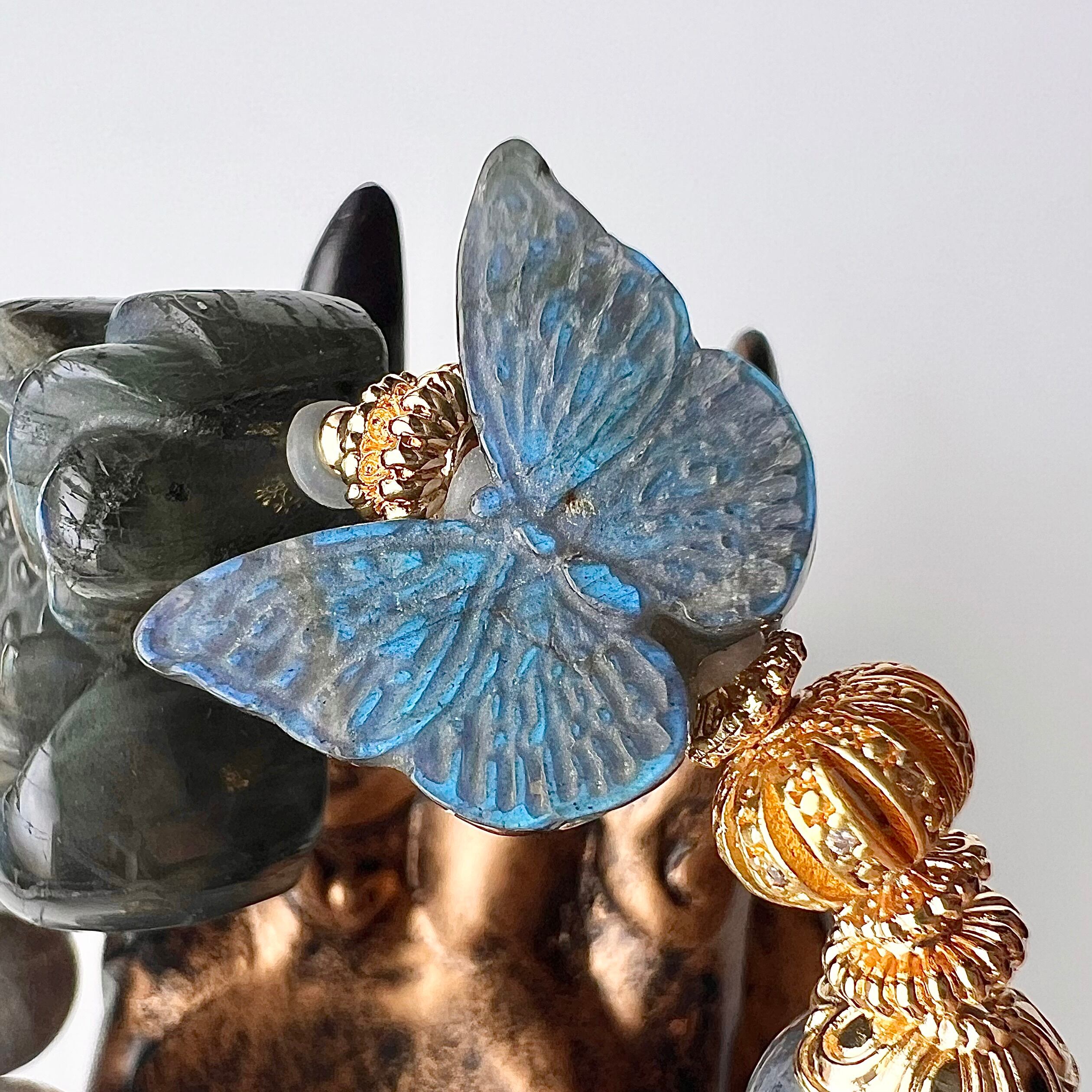 蓮の花と蝶のラブラドライトデザインブレスレットです