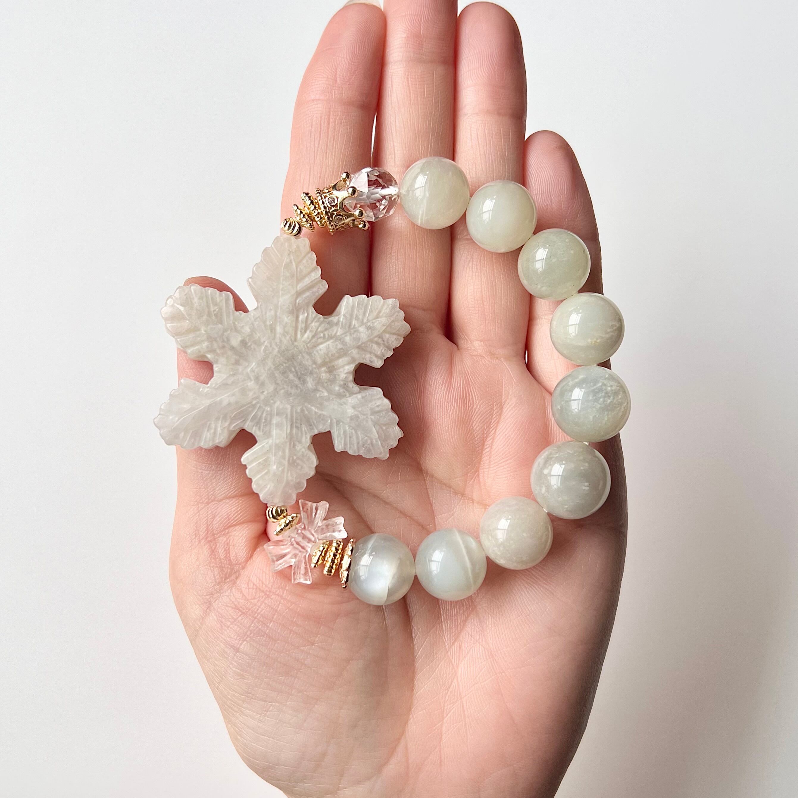 ムーンストーンの雪の結晶と、ホワイトムーンストーンデザインブレスレットです
